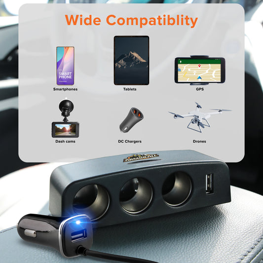 150W Cup Holder Multi-Device Power Inverter, 4 Ports in 1