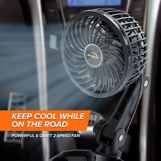 2-in-1 XL Car Fan Cupholder and Mini 2-Speed Cooling Fan, USB A Powered