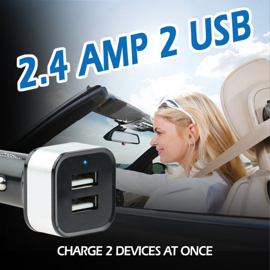 2-Port Car Charger, Powers Up Two Devices Simultaneously