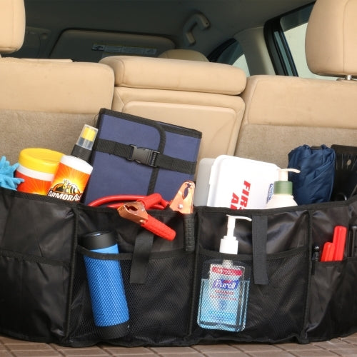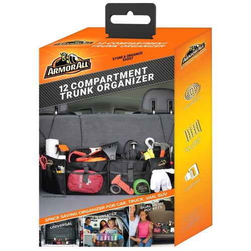 Your car's trunk is often a place where everything can be thrown around without any sense of order. With the Armor All 12 Compartment Trunk Organizer, you can transform chaos into perfection. Perfect for storing different items, you can use it to hold jumper cables, sanitary wipes, ice scrapers, emergency road kits, first aid kits, whatever you deem essential for the drive ahead. The 12 compartments allow for easy access and a built-in insulated cooler provides great space for cold sodas and other beverages. Fully collapsible, you can take it on-the-go using the organizer's handles. Make your car's tailgate sensible again with the 12 Compartment Trunk Organizer.
