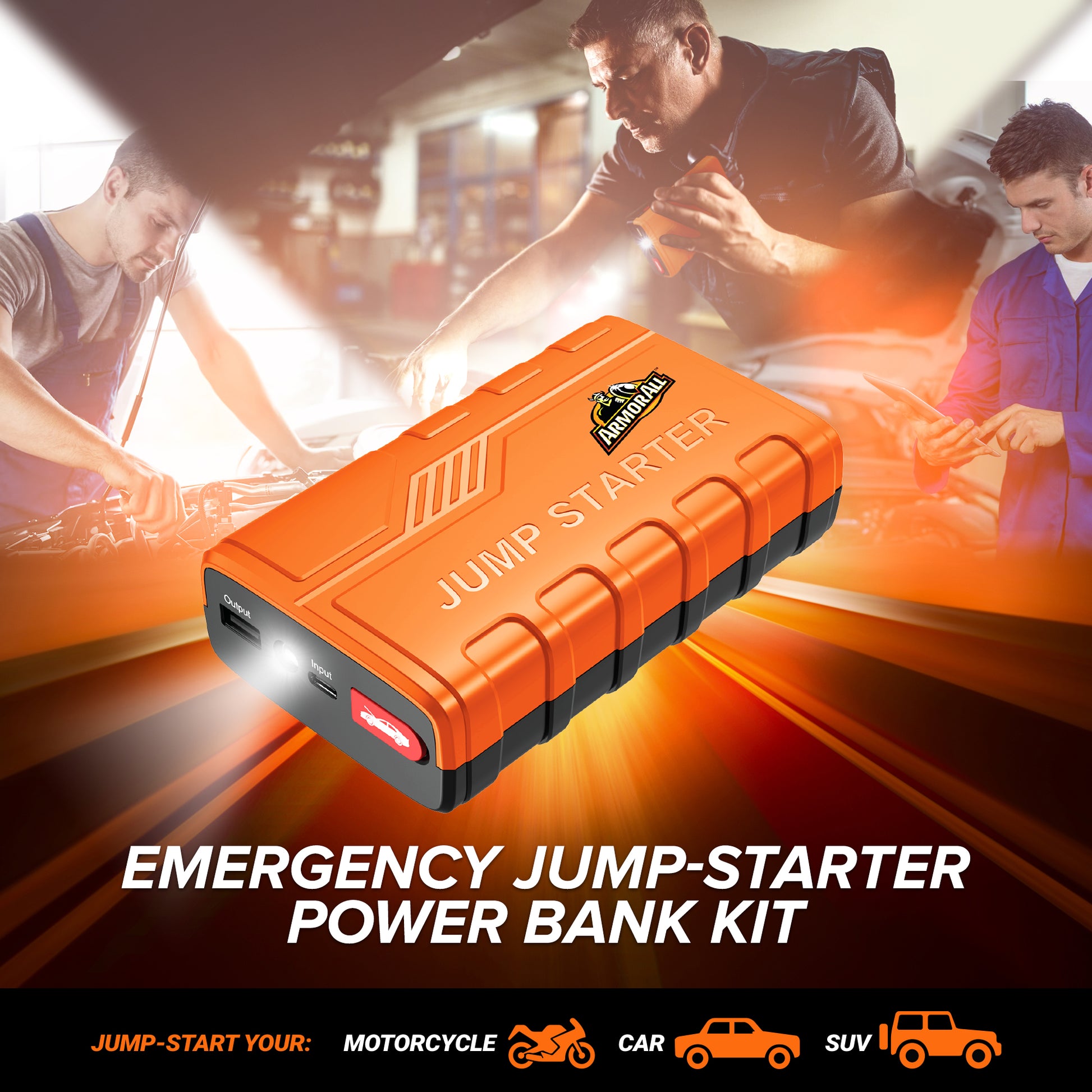 Emergency Jump Starter Power Bank Kit, 800A Peak Amps, Ultra-Bright LED Flashlight