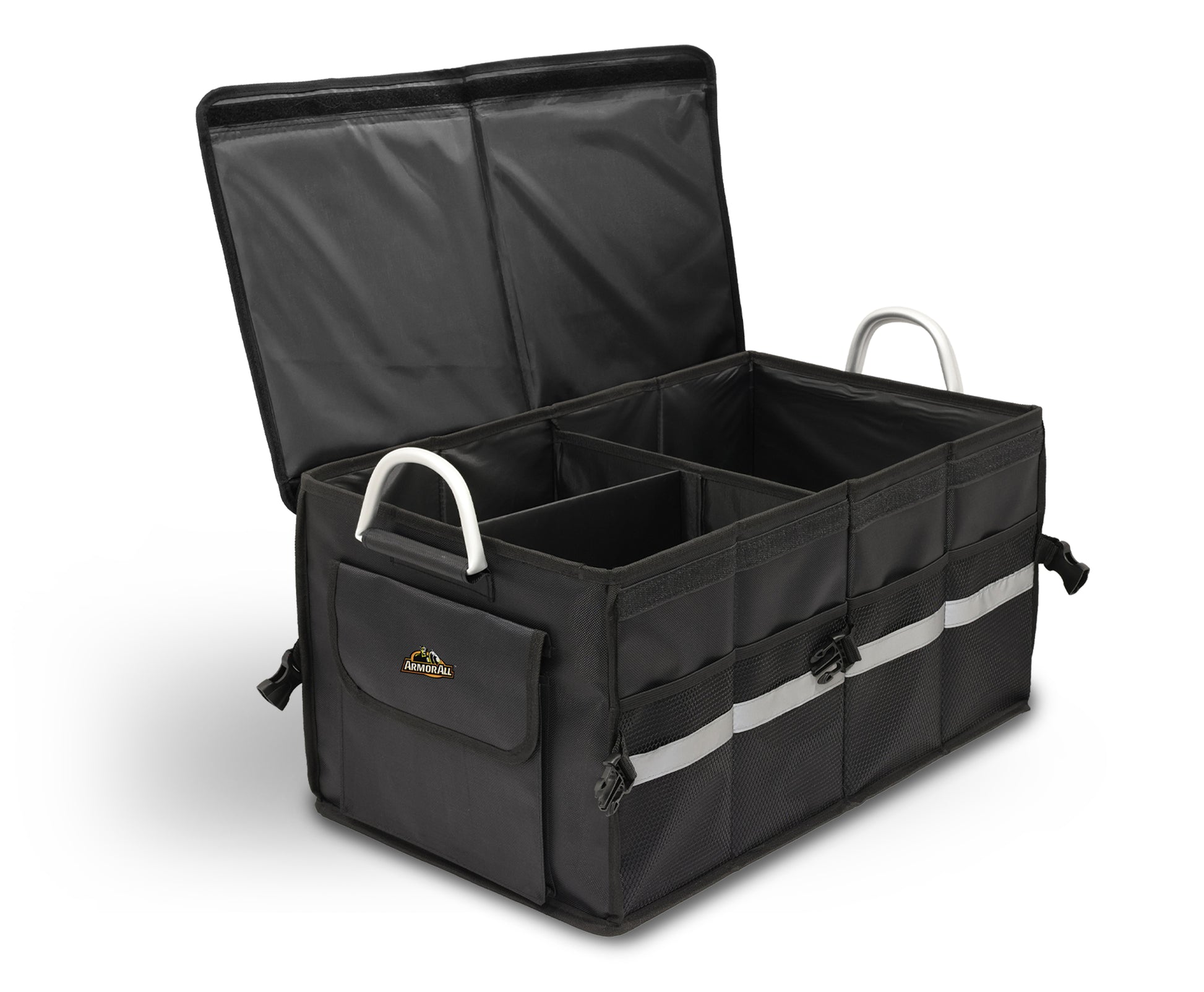 Heavy Duty Collapsible Aluminum Handle Trunk Organizer, Car Trunk Cargo Storage, 3 Compartments, Non-Slip Base