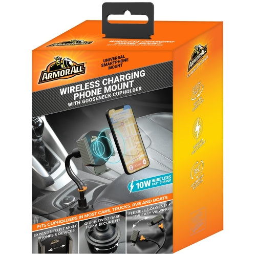 When taking your phone around, the chances of it running out of power when needed is a possibility. The Armor All™ Wireless Charging Phone Mount With Gooseneck Cupholder can provide the right option for your needs. Expandable to fit any smartphone that’s QI-enabled, the arms fit most models and cases. You can easily install it in any vehicle’s cupholder thanks to the expanding base. To have your item allow for wireless charging, take the included 3ft cable and connect it to your car’s USB-A port for immediate power. You’ll also be able to turn the phone to the perfect viewing angle thanks to the adjustable mount which can turn up to 360 degrees. For the ideal place to get your smartphone repowered, turn to the Wireless Charging Phone Mount from Armor All.