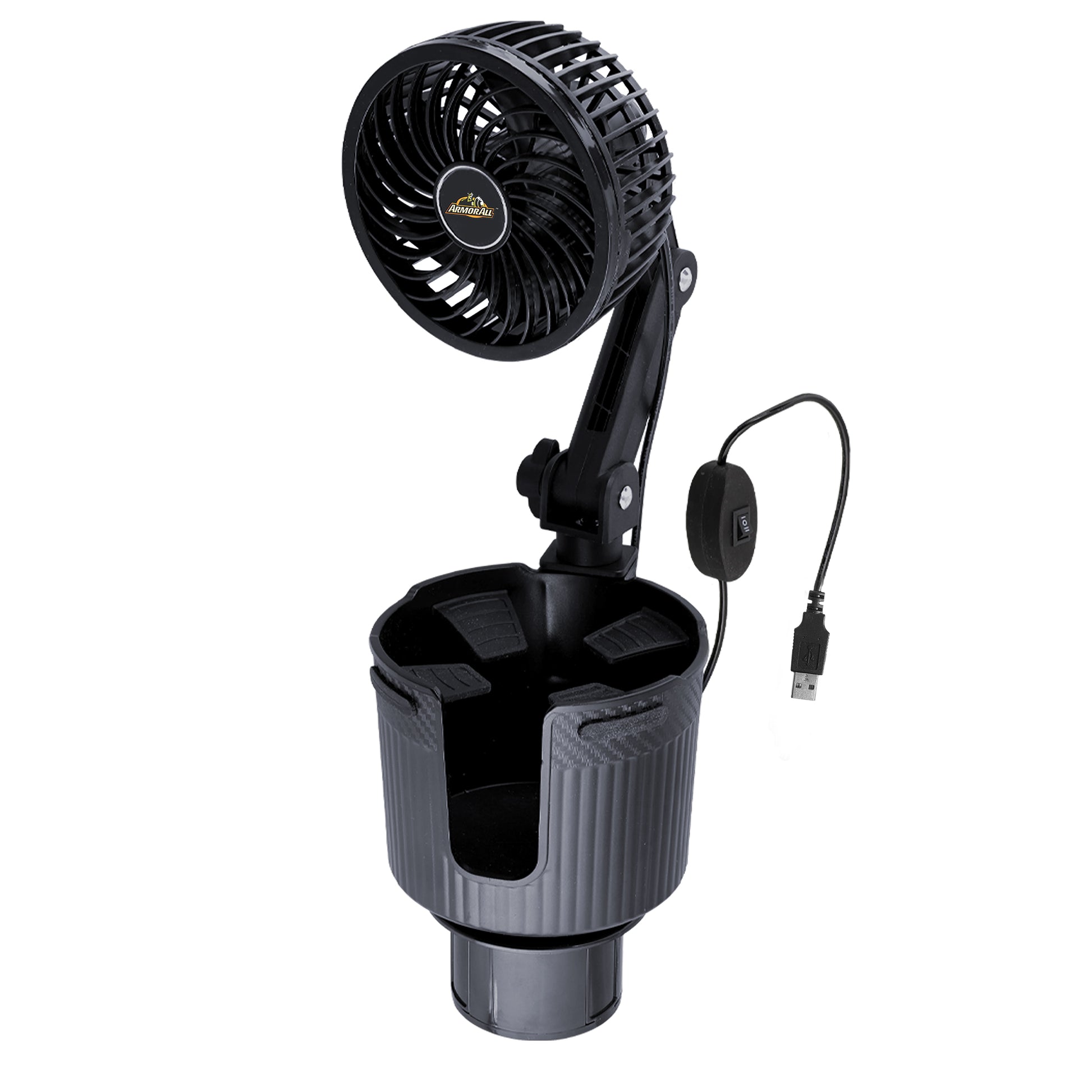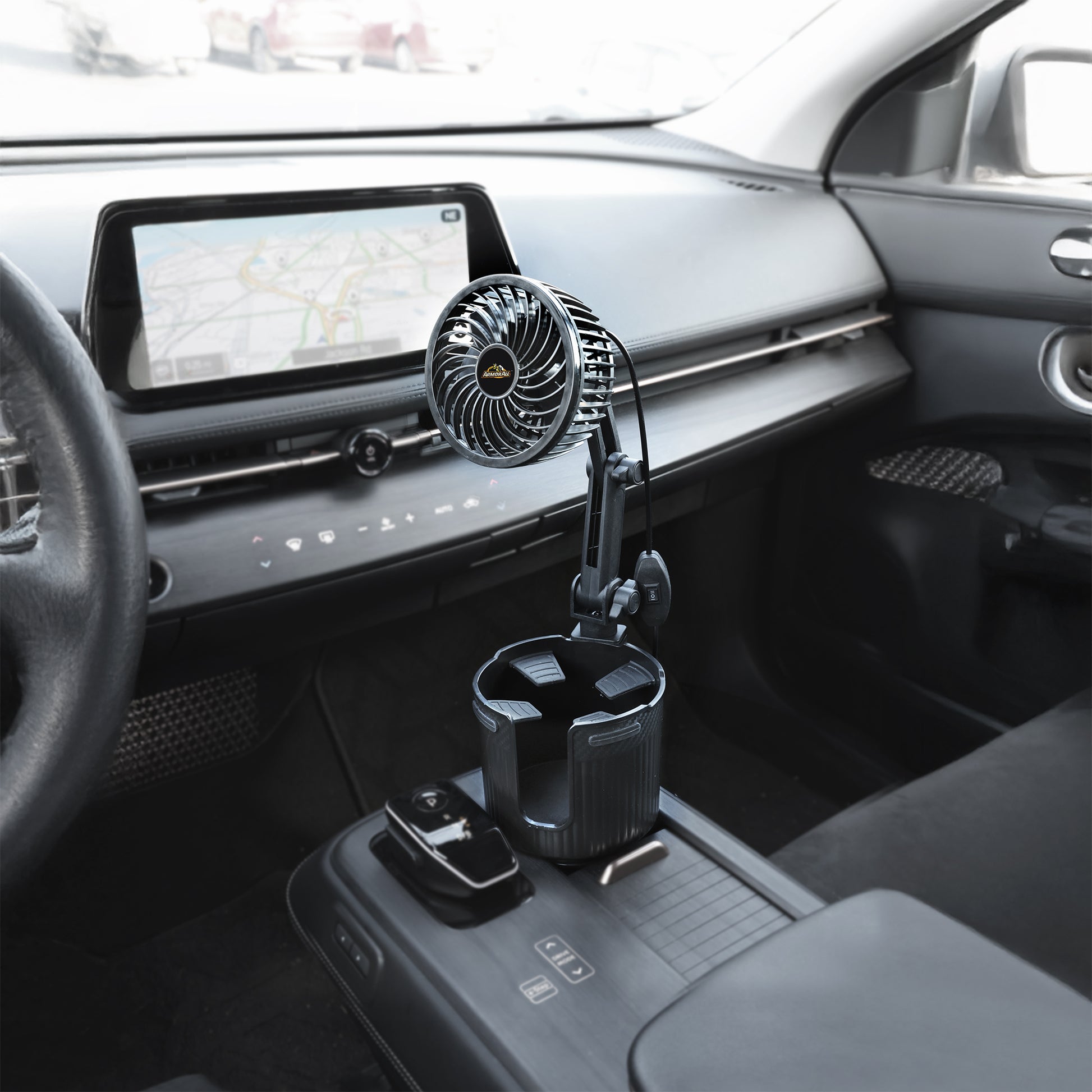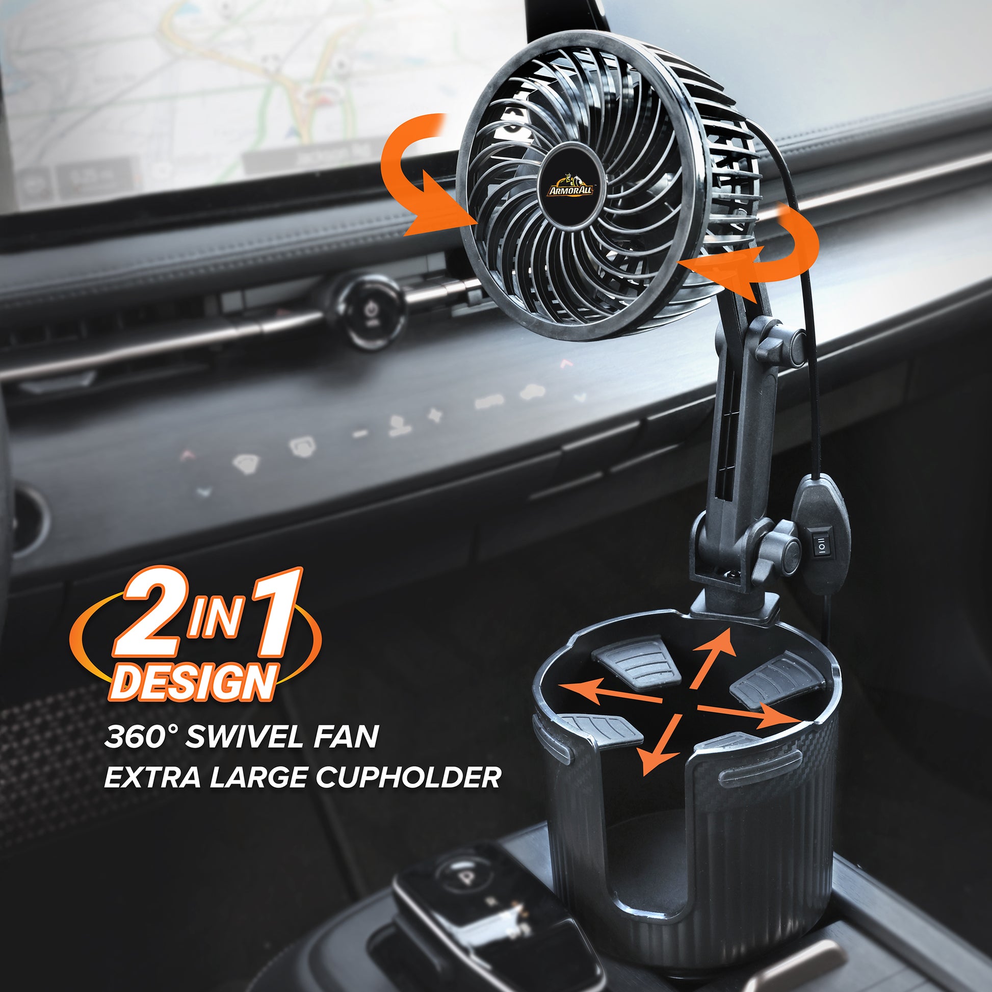 2-in-1 XL Car Fan Cupholder and Mini 2-Speed Cooling Fan, USB A Powered