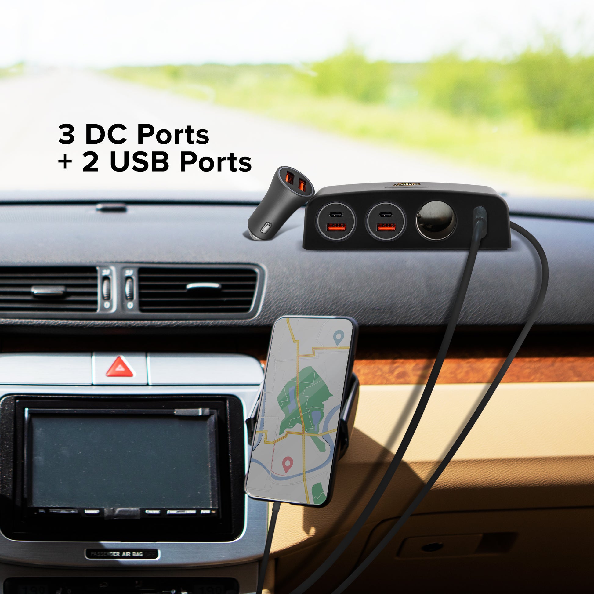 DC Power Station, Charge Up To 5 Devices, 3 12V Ports/Two USB-A Ports