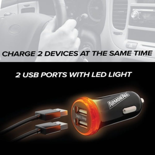 This convenient bundle includes the Armor All Universal Mount for Smartphone & GPS and the Armor All 2-Port Car Charger. The mount securely holds your phone or GPS in place, while the charger keeps your devices powered up. The mount can be attached to your windshield, dashboard, or air vent, and it can be rotated 360 degrees for the perfect viewing angle. The charger has two USB ports, so you can charge two devices at the same time. This bundle is the perfect way to keep your phone or GPS charged and secure while you drive.