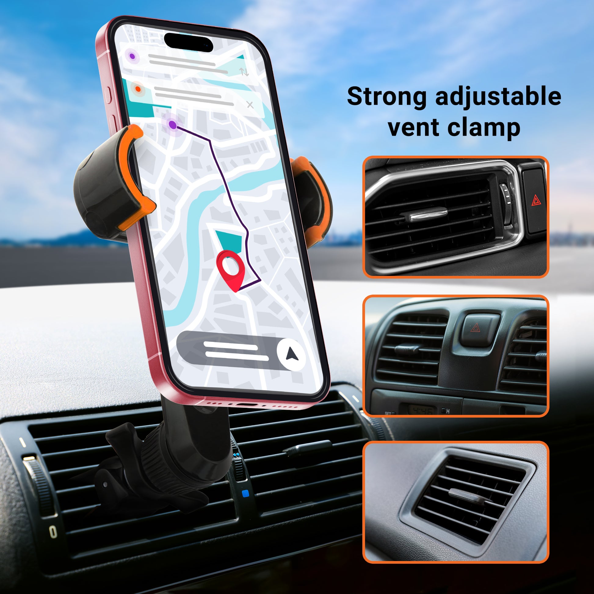 Car Phone Adjustable Mount Bundle: Vent Mount + 6ft Type C Cable